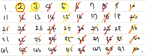 그러므로 범위내의 소수의 배수를 다 지워주면, 소수만 남게된다.